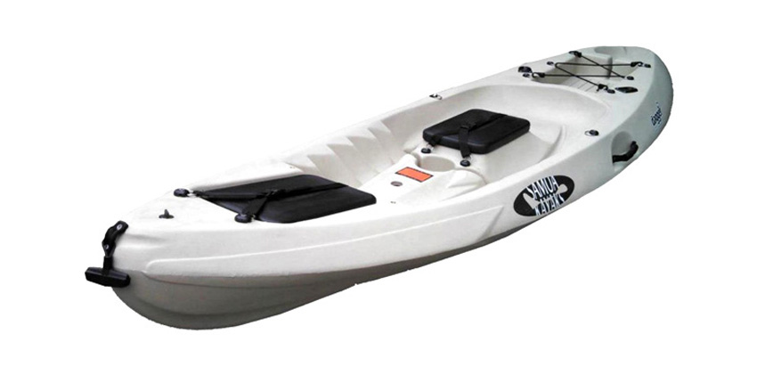 Kayak abierto single, rotomoldeado en polietileno lineal, diseñado especialmente para la pesca en kayak. Apto para usar en lagunas, ríos y mar. Se trata de un kayak abierto confortable, estable y seco debido al diseño de su cubierta con distintas canaletas que conducen el agua hacia los orificios de drenaje. Posee posacañas, espacios de guardado en la proa y centro del kayak mediante espaciosos tambuchos con tapas, un posavasos de gran tamaño para colocar recipientes cilíndricos, un espacio en popa con dos sogas elásticas que permiten colocar una conservadora de 50 Litros.