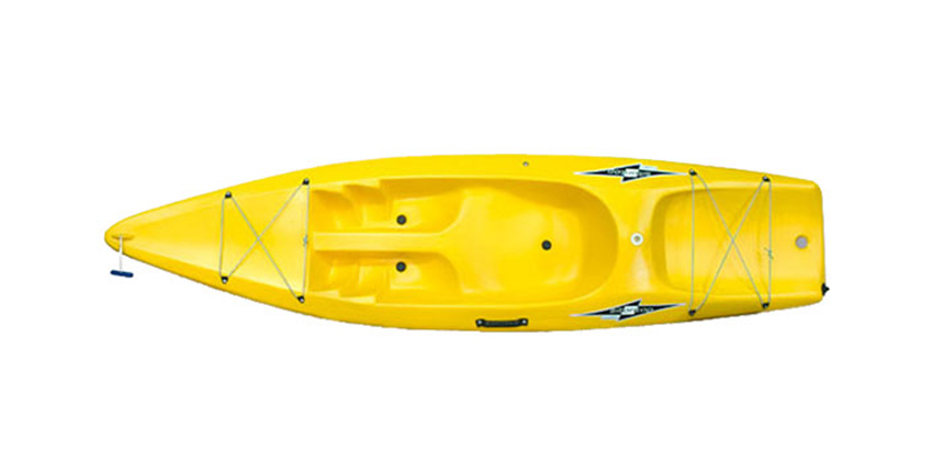 Kayak abierto single, liviano y fácil de transportar. Rotomoldeado de polietileno lineal de media densidad con filtro ultravioleta. Estable, seguro, divertido y rápido. Idea para lagos, ríos, mar, pesca, surf en pequeñas olas. Posee manija lateral y en proa, 12 puntos de anclaje, imbornales, estanco.